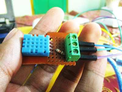 Dengan rangkaian yang seperti diatas saya buat DHT11 saya menjadi DIY Modul. Yang mana hasil jadinya seperti dibawah ini: